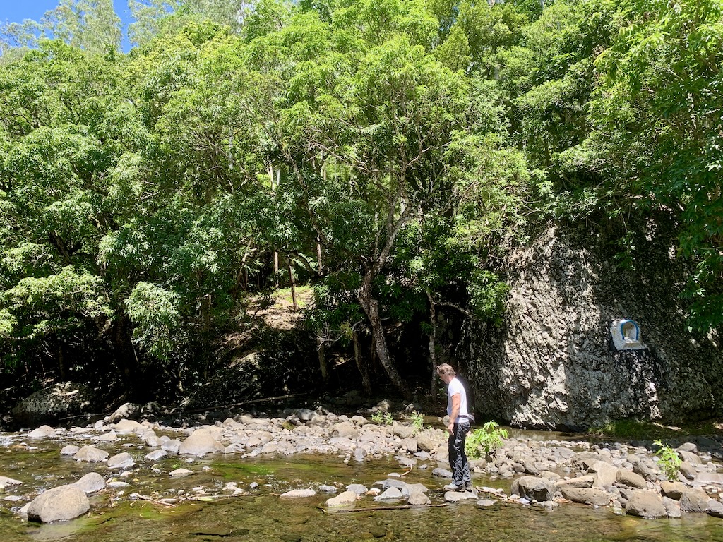 Wieder an der „rivière noire“ angekommen, mussten wir an der Stelle La Grotte wieder den Fluss überqueren. Hier ruhten wir uns ein paar Minuten auf einem Felsen aus.