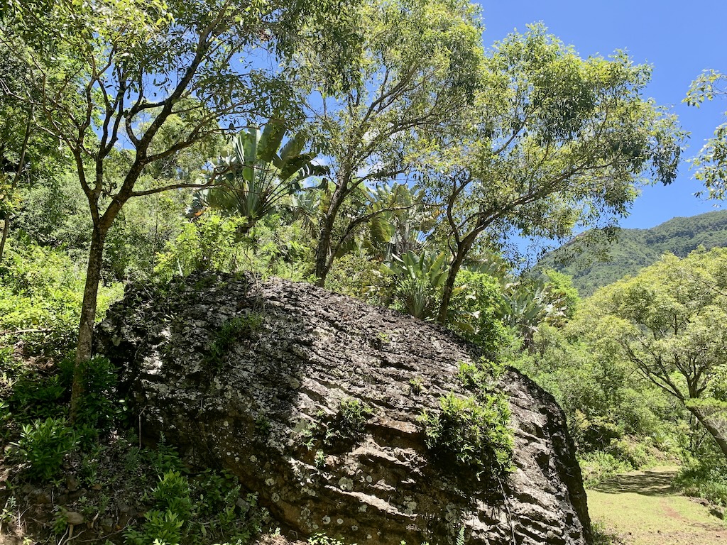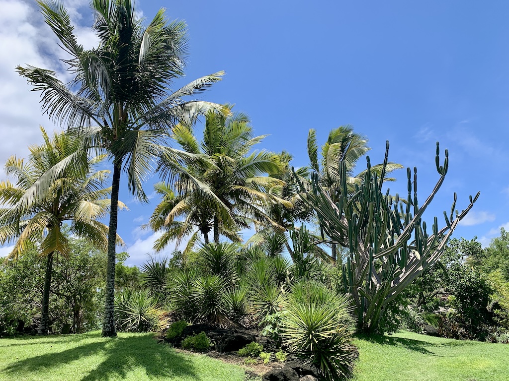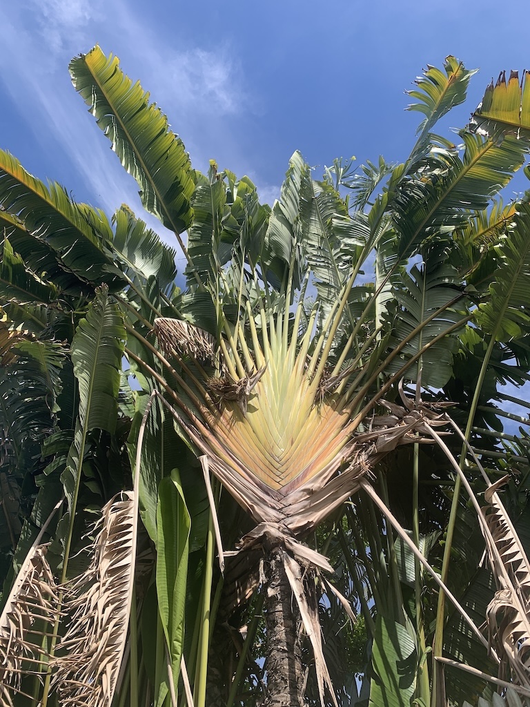 Hier eine Palme, die „Plante du voyageur“, übersetzt „Pflanze des Reisenden“ genannt wird, weil sich innerhalb der Blätter Wasser befindet und man so bei Bedarf den Durst stillen kann.