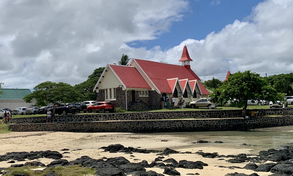 Wir fuhren früher los um sicher nicht zu spät zu kommen, doch heute war Sonntag und so herrschte für einmal keinen Stau rundum Port Louis. Da wir viel zu früh im Norden ankamen, machten wir noch einen Abstecher zu der bekannten Kirche mit dem roten Dach, am Cap Malheureux, die „Notre-Dame auxiliatrice“.