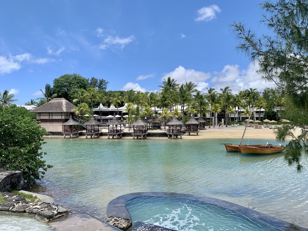 Danach führte sie uns den Weg entlang, den wir auch damals zur Hochzeit hochgelaufen sind. Uns fiel sofort auf, dass es jetzt hier mehr Zimmer und weniger Vegetation gab. Schade. Wir spazierten an der Lagune vorbei und entdeckten das Restaurant und die einzelnen vorgelagerten Sitzecken auf Stelzen, wo wir damals auch unser Abendessen genossen.