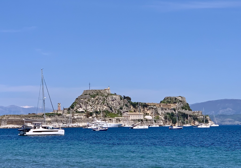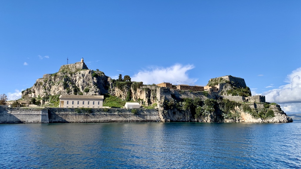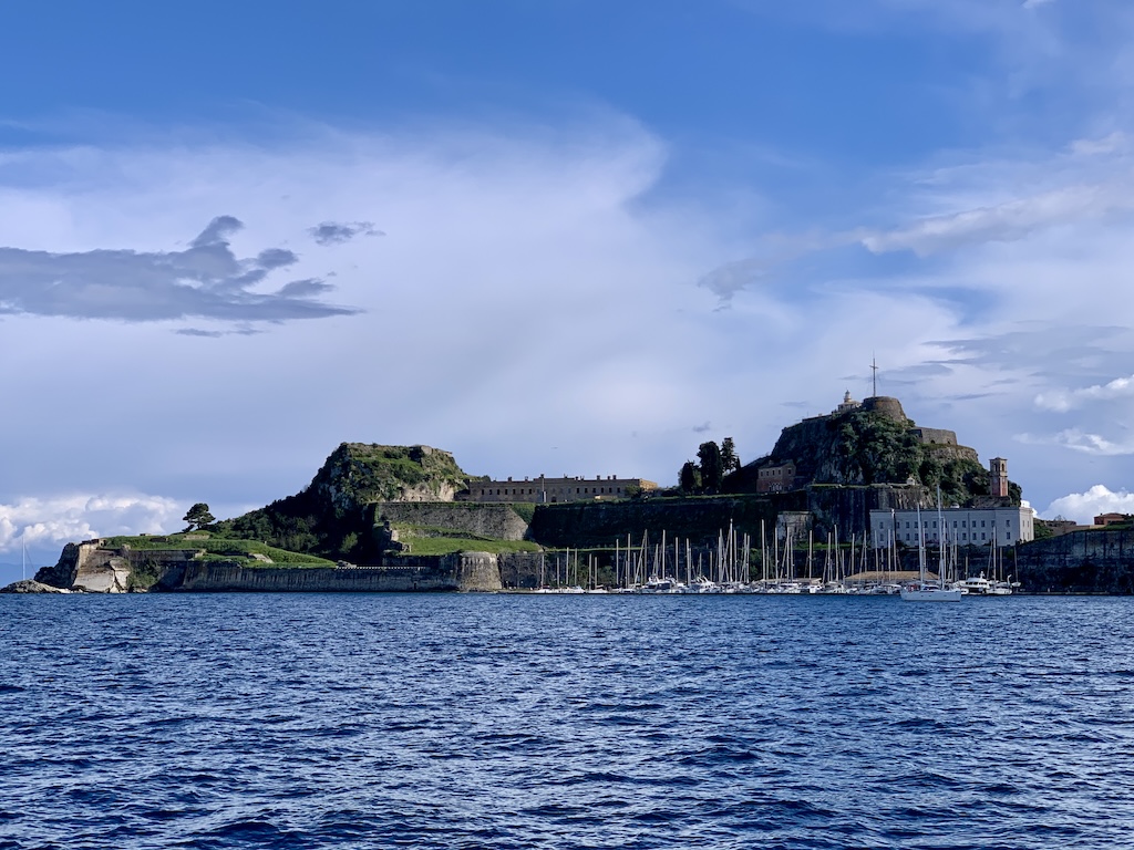 Am dritten Tag verzogen sich dann allmählich die dicken grauen Wolken und so entschieden wir den letzten Tag Ostwind zu nutzen um die 15 Seemeilen nach Korfu zu segeln. Unser erster Ankerplatz, nördlich von Korfustadt war alles andere als schön, aber rationnel die beste Wahl. Hier fanden wir ausreichend Schutz vor den südlichen Wellen und Einkaufen im nahegelegenen Lidl gestaltete sich relativ einfach. Nach zwei Tagen hatte der Wind dann endlich auf Nord gedreht, so dass wir in die Ankerbucht unterhalb der alten Festung von Korfu wechseln konnten. Hier ein paar Fotos die ich beim Vorbeifahren geschossen habe.