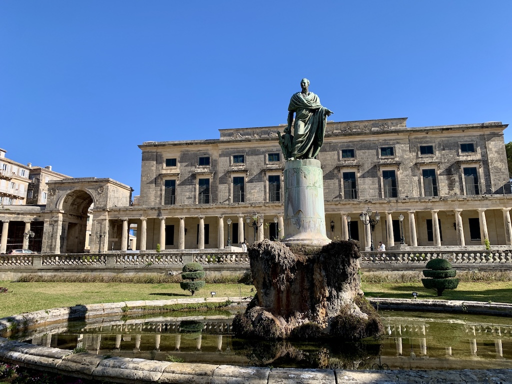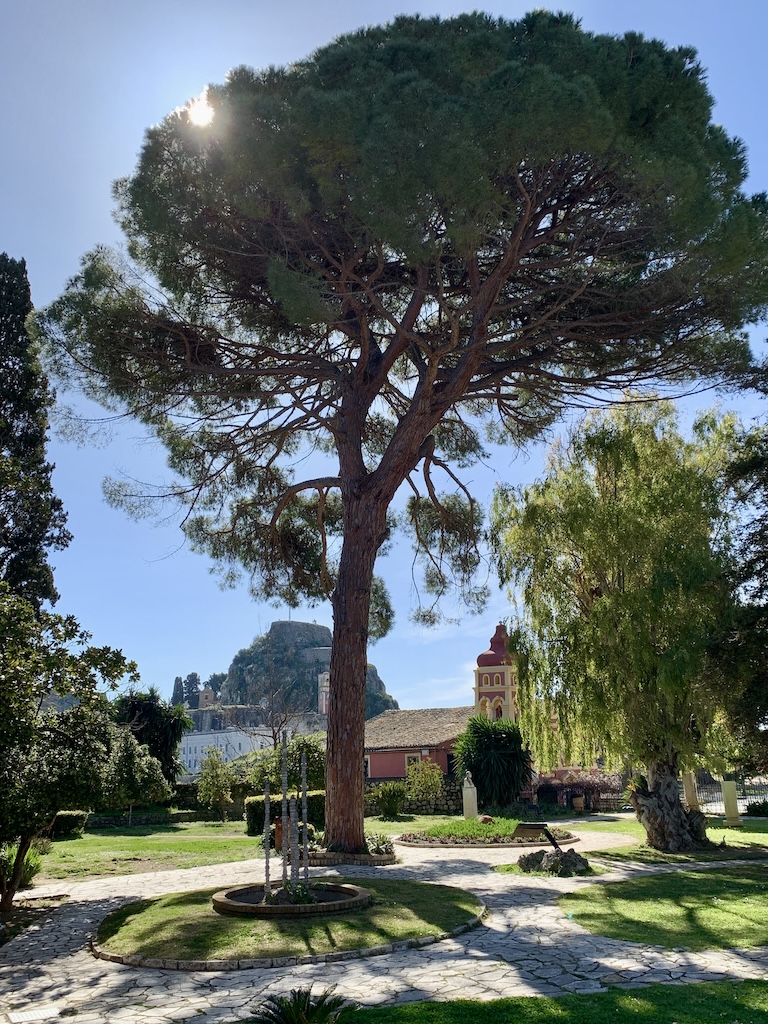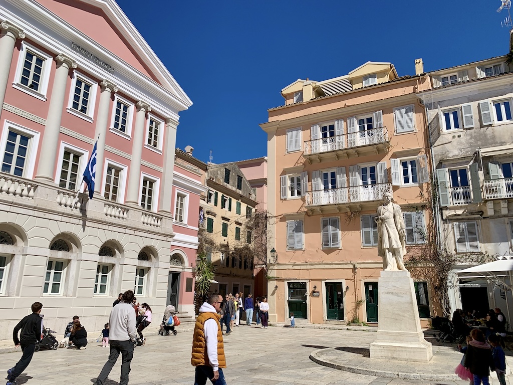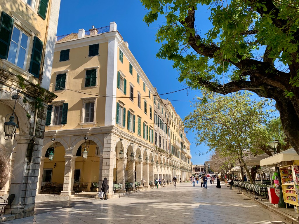 Dann stand endlich unsere erste Erkundungstour durch die Altstadt von Korfu an. Wir spazierten an der Virgin Mary Mandrakina Kirche vorbei, durch den öffentlichen Park, der mir wirklich sehr gut gefiel, vorbei am Museum für asiatische Kunst, dem anaktoron Square mit der Sir Frederik Statue bis zur Liston Avenue. Von hier oben hatten wir auch eine schöne Aussicht auf den Faliraki Square, ein sehr beliebter Ort zum Verweilen mit den vielen Bars, Restaurants und Blick aufs Meer.