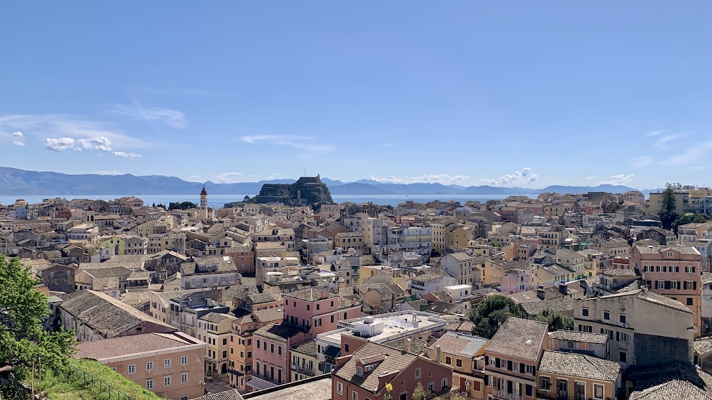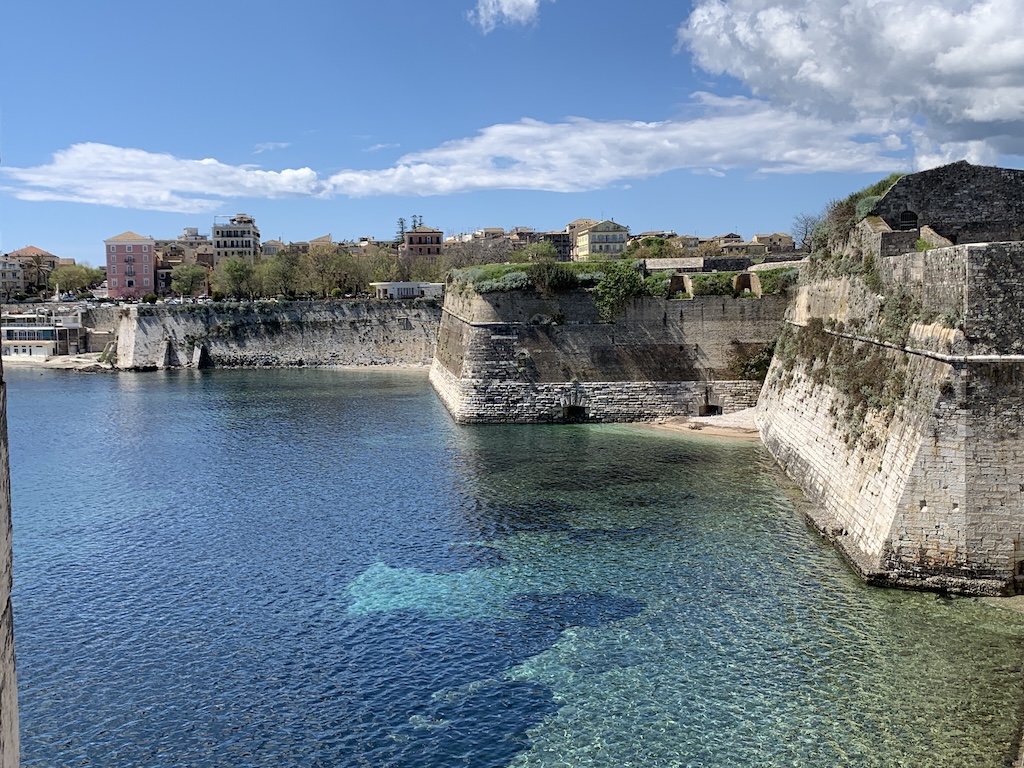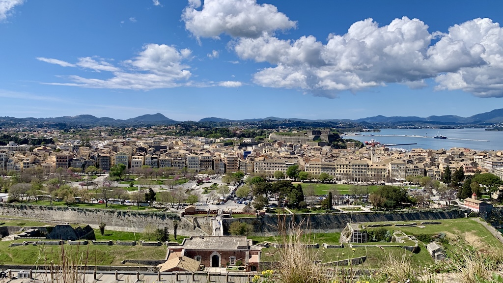 Als wir uns am Fusse der neuen Festung befanden, entschlossen wir uns diese zu besichtigen. In der Altstadt von Korfu gibt es zwei venezianische Festungen, eine Neue, erbaut zwischen 1576-1645 und die alte Festung, die zuerst von Byzantinern begonnen und dann im 16. Jahrhundert von den Venezianern modifiziert wurde. Von der neuen Festung aus, hatten wir einen schönen Ausblick auf die umliegende Altstadt.