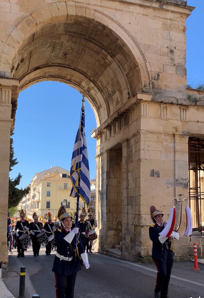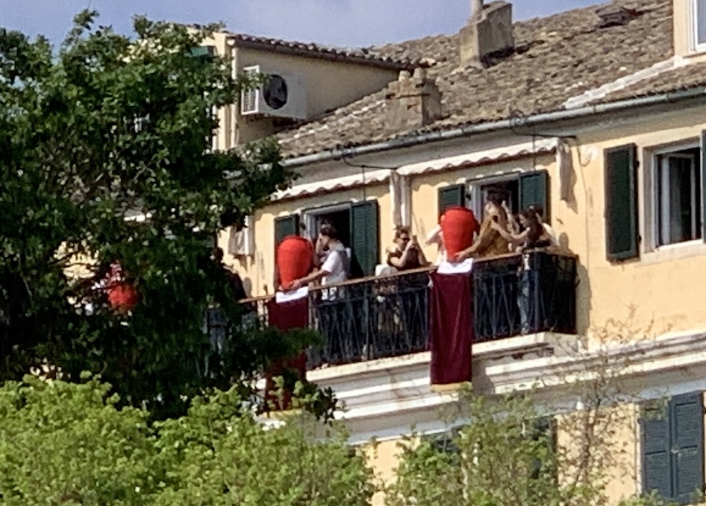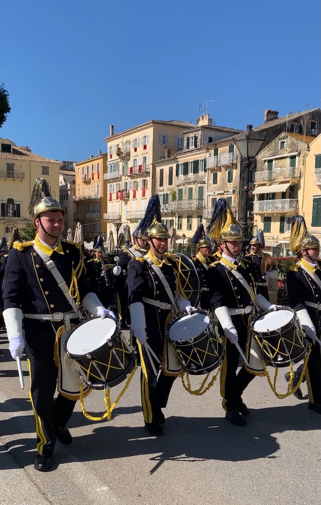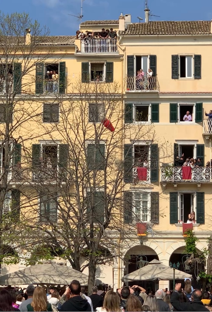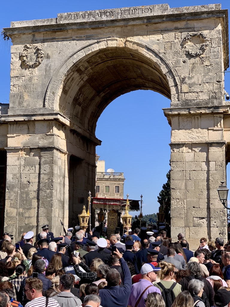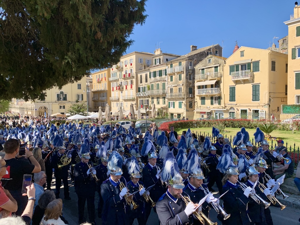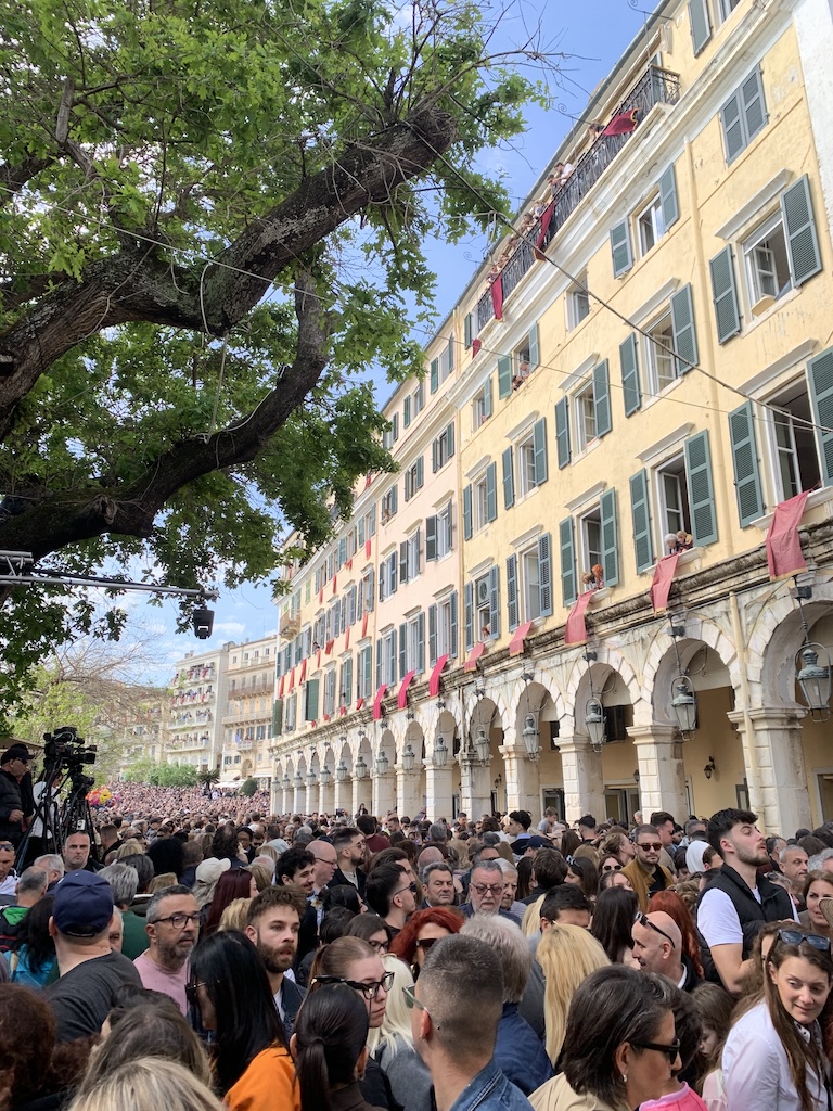 Am nächsten Morgen machten wir uns nach dem Frühstück erneut auf den Weg Richtung Altstadt, denn heute feiert man hier den Palmsonntag. Er markiert den Beginn der intensiven orthodoxen Osterfeierlichkeiten hier auf Korfu. Um 11 Uhr fand eine grosse Prozession zu Ehren des Heiligen Spyridon statt, die an die Rettung vor der Pest 1629 erinnert. Alle 18 Philharmoniker-Orchester der Insel begleiten die Reliquie durch die Altstadt. Hier ein paar Eindrücke: