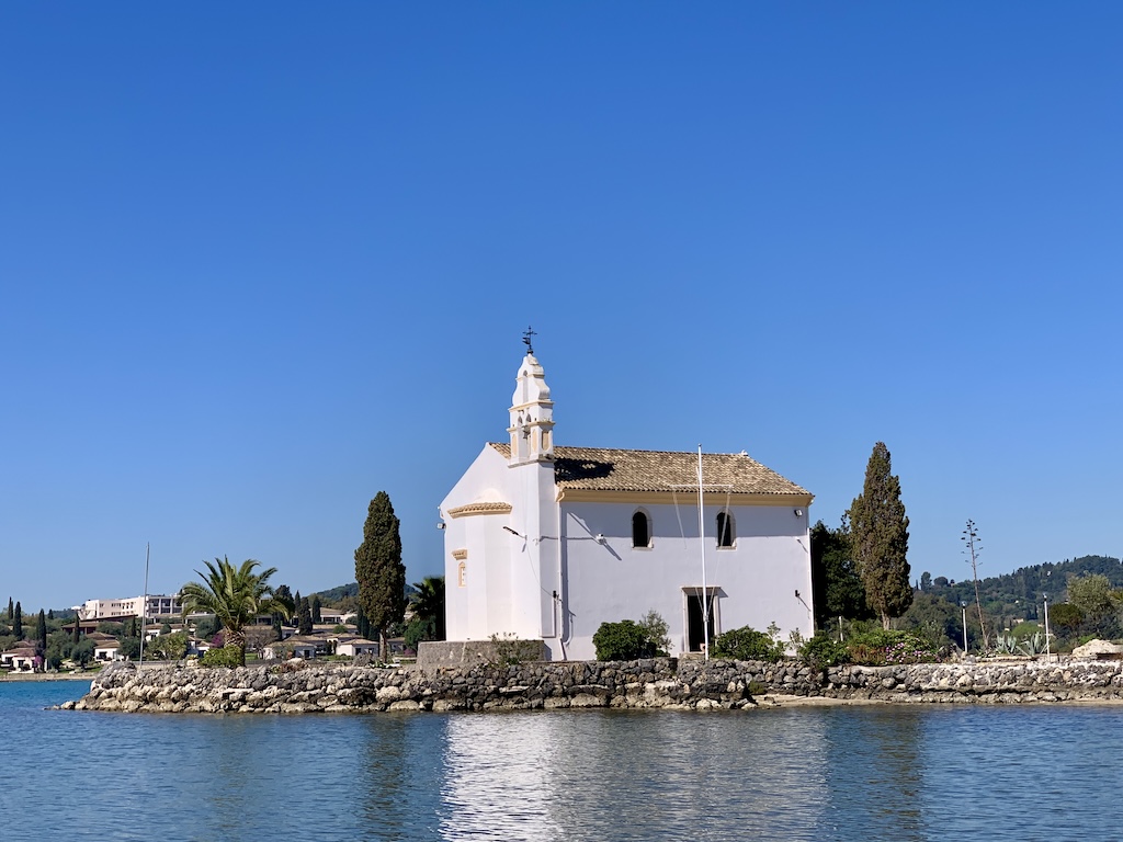 Wir entschlossen uns mit dem üblichen Nachmittags-NW-Wind wieder nach Süden zu segeln und ankerten unweit von der Gouvia-Marina in der Bucht von Ormos Kommeno. Hier verweilten wir ganze drei Tage und nutzten die Gelegenheit im Hafen und in der angrenzenden Ortschaft abends lecker essen zu gehen und den Vorrat an frischen Lebensmittel aufzustocken. Während Guy die Zeit hier vor Anker nutzte um noch ein 3D-Druckprojekt fertigzustellen, drehte ich eine kleine Runde mit dem SUP zur Ypapanti Kirche, die sich auf einer kleinen vorgelagerten Insel in der Bucht nebenan befindet und widmete mich anschliessend dem Blogschreiben… schliesslich gibt es ja schon wieder viel zu berichten… 😉
