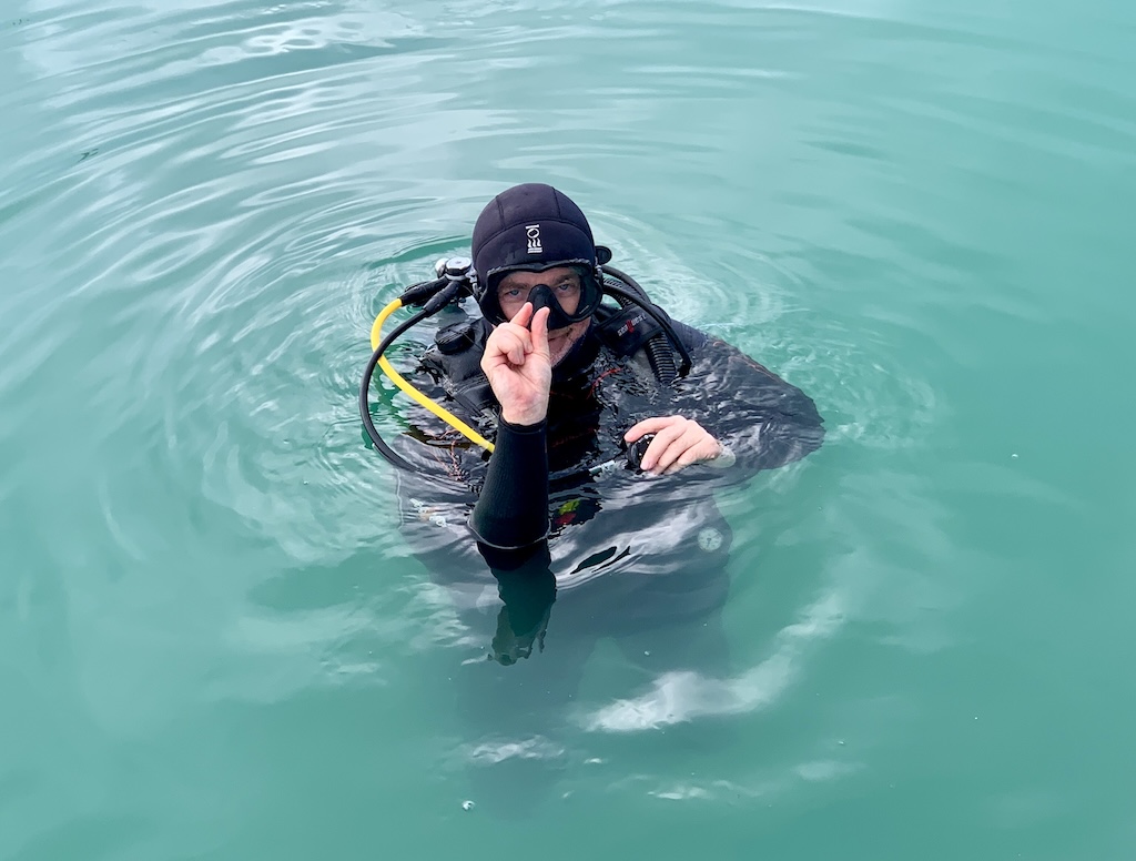 Aber eine wichtige Arbeit stand noch an, nämlich das Unterwasserschiff von Adesso vom ganzen Bewuchs befreien. Guy wollte mit dieser ekeligen, kalten Arbeit bis kurz vor unserem Start warten…in der Hoffnung, dass das Wasser vielleicht doch noch etwas „wärmer“ würde und damit sich vor der Abfahrt nicht schon wieder neuer Bewuchs ansiedelt. Bei 16 Grad Wassertemperatur schrubbte er jeweils ununterbrochen 1-2 Stunden. Er hatte gehofft, dass zwei Tauchgänge ausreichen würden, aber da der Steuerbordrumpf noch schlimmer bewachsen war als der auf der Backbordseite, musste er an drei Tagen ins kalte Hafenbecken 😦