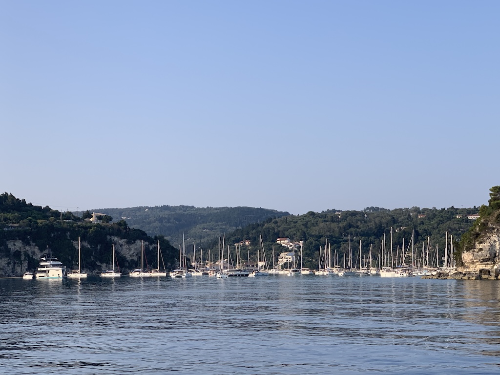 Schon letztes Jahr war Lakka die erste Bucht die wir ansteuerten. Doch als wir uns damals näherten, bekamen wir einen Schock. Gefühlt 100 Boote standen hier, sehr dicht nebeneinander, total überfüllt… Foto von 2025: